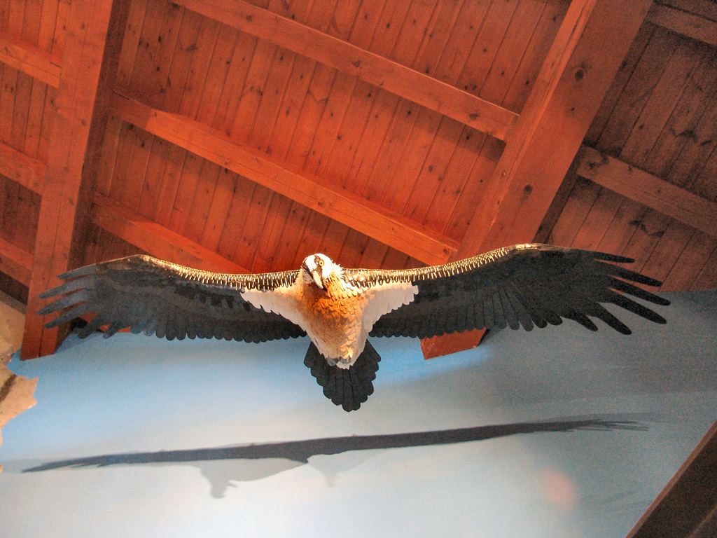 Il gipeto, l’avvoltoio degli agnelli, scomparso proprio in questa valle agli inizi del secolo scorso ed ora tornato con la sua impressionante apertura alare a volare nei cieli della vallata, rappresenta il tema centrale di questo spazio, che con informazioni, immagini, suoni e giochi multimediali, permette di approfondire la conoscenza di questo spettacolare animale, oltre che dell’avifauna del Parco.