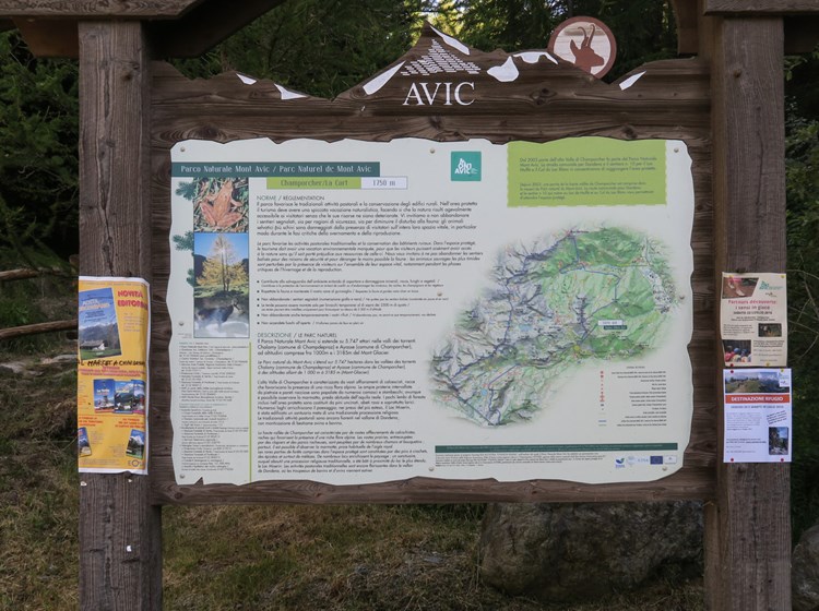 Il Parco del Mont Avic, primo parco naturale valdostano, tutela dal 1989 l’alta valle del torrente Chalamy, nel comune di Champdepraz e, dal 2003, il vallone di Dondena nel territorio di Champorcher.