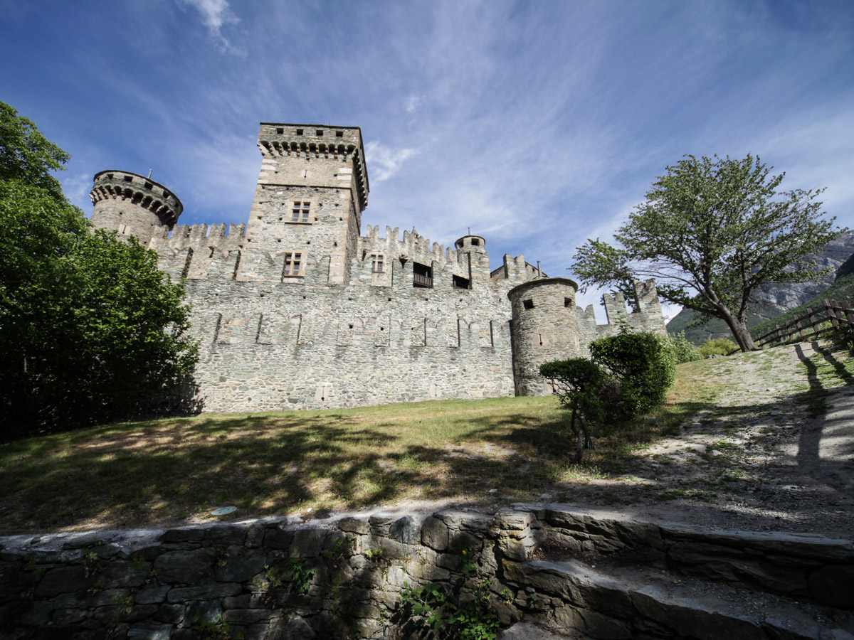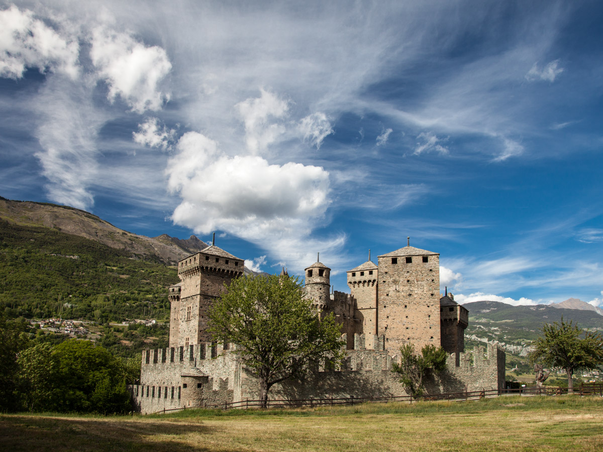 Il castello più famoso della Valle d'Aosta: un articolato complesso di torri e strutture merlate e cicli pittorici in stile gotico.