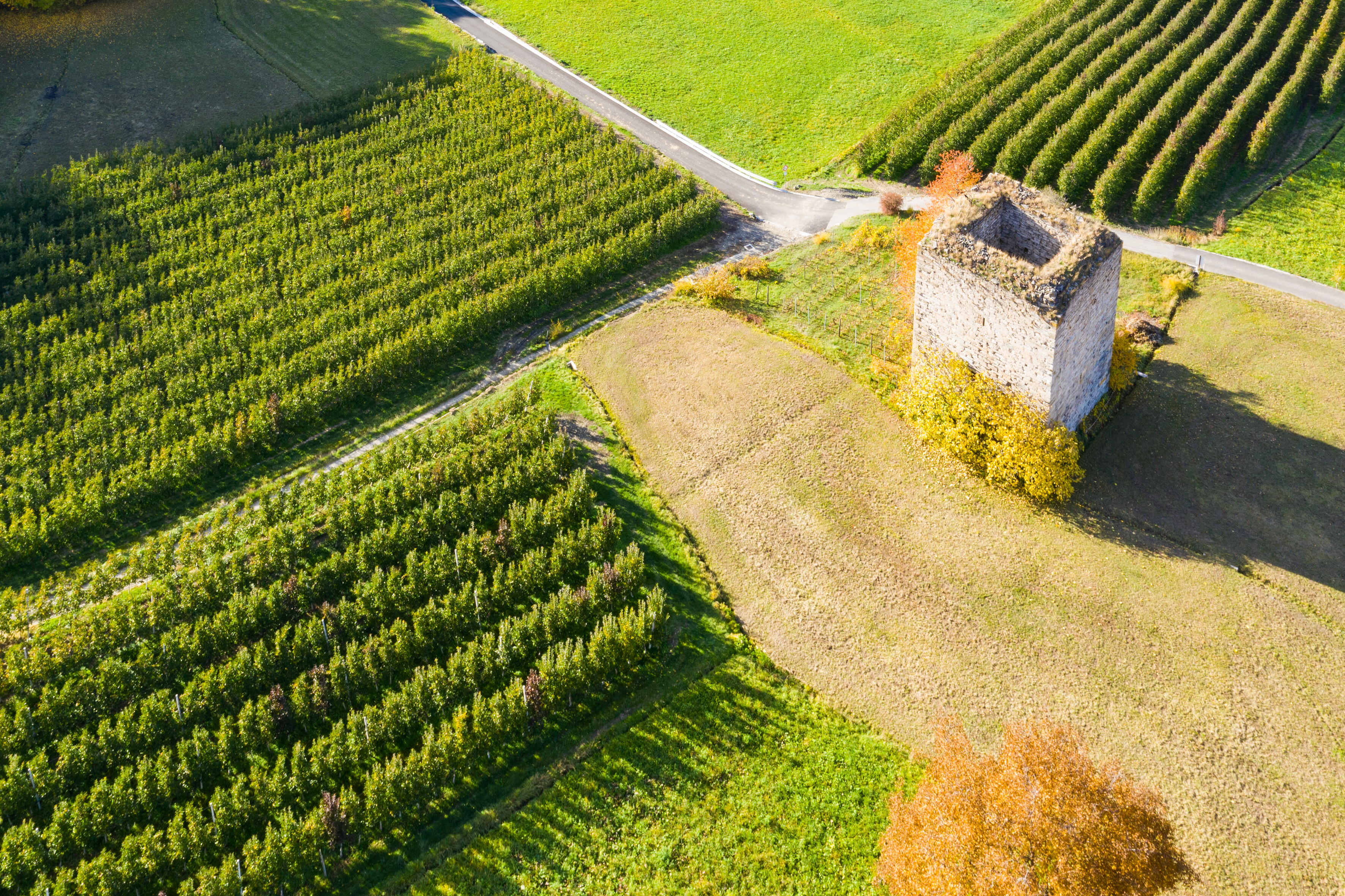 Si tratta di una massiccia costruzione a pianta quadrilatera. Sorgendo su di un terreno pianeggiante, senza difese naturali, la torre aveva una struttura massiccia e mura perimetrali dello spessore di circa 2 metri.