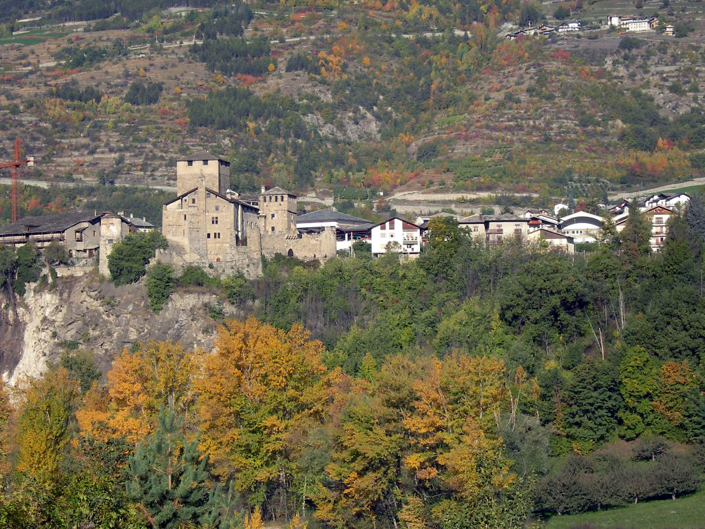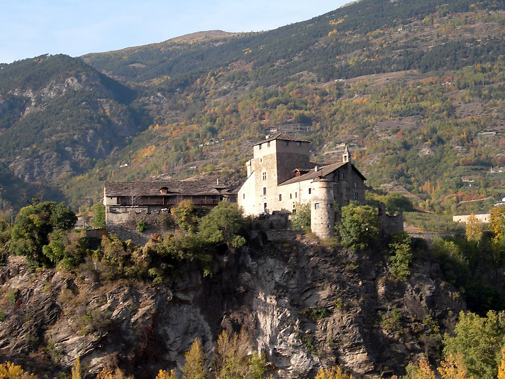 L’impianto più antico comprendeva la cappella e la torre centrale a pianta quadrata (donjon) circondata da una cinta muraria, configurazione tipica dei castelli valdostani risalenti al X-XII secolo.