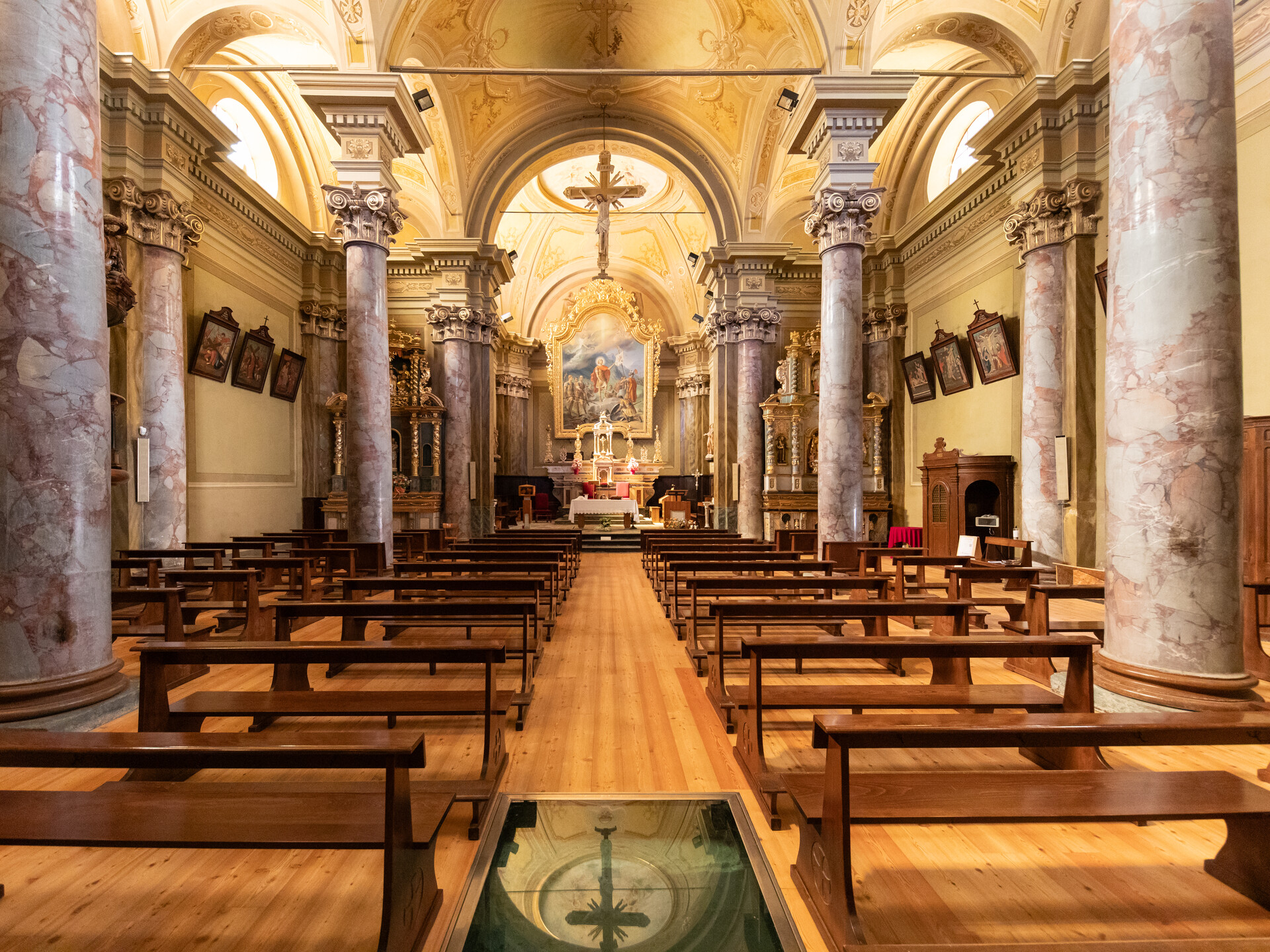 La chiesa fu progettata dall’archittetto Giuseppe Lancia e decorata dai fratelli Artari di Verrès.