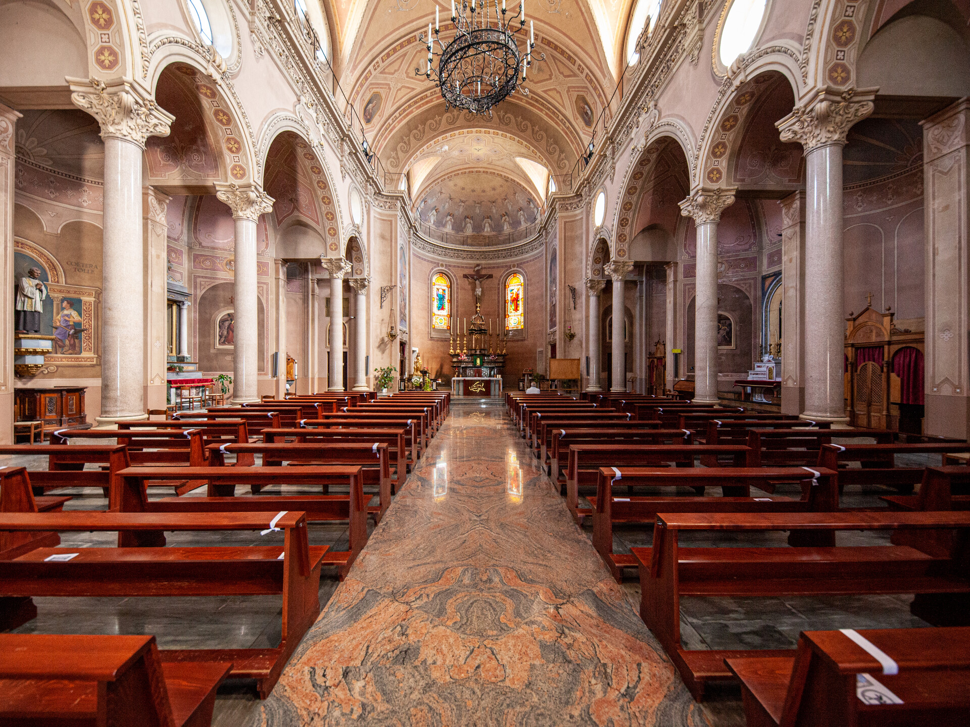 L’attuale chiesa è stata inaugurata nel 1905. Le pitture della volta nella navata centrale rappresentano Maria Assunta in cielo e S. Pietro eseguiti tra il 1904 ed il 1905 dai fratelli Alessandro e Augusto Artari di Verrès.
