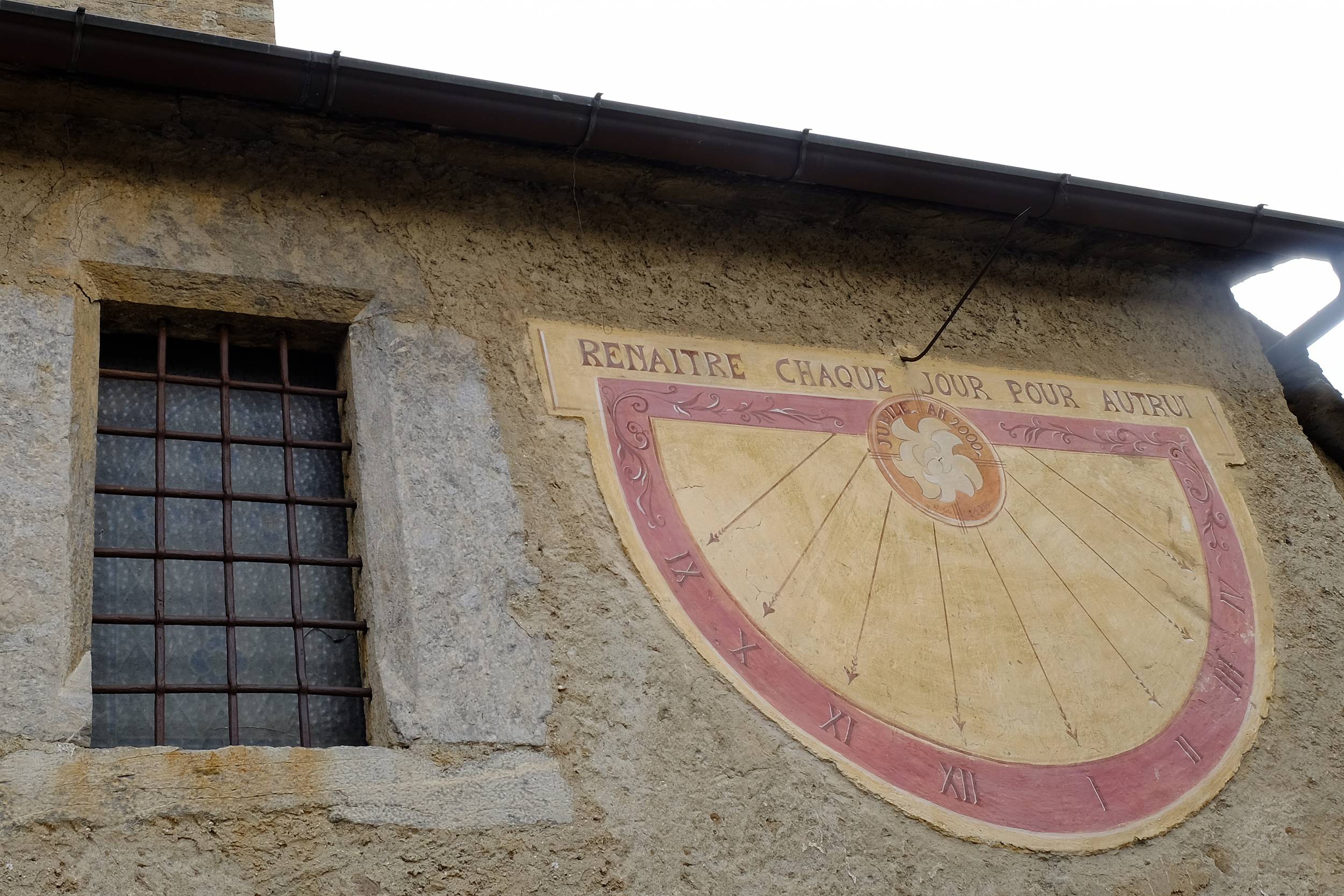 Una bella vetrata risalente al XVI secolo e originariamente collocata sulla facciata della chiesa, è composta da uno stemma dei signori d’Avise in un cerchio attorno al quale stanno altri quattro tondi che raffigurano Sant’Ilario, patrono della parrocchia, San Nicola e Santa Caterina. E’ inoltre presente un’iscrizione che ricorda i committenti dell’opera, Stefano d’Avise e sua moglie Pernette, vissuti nel cinquecento.
