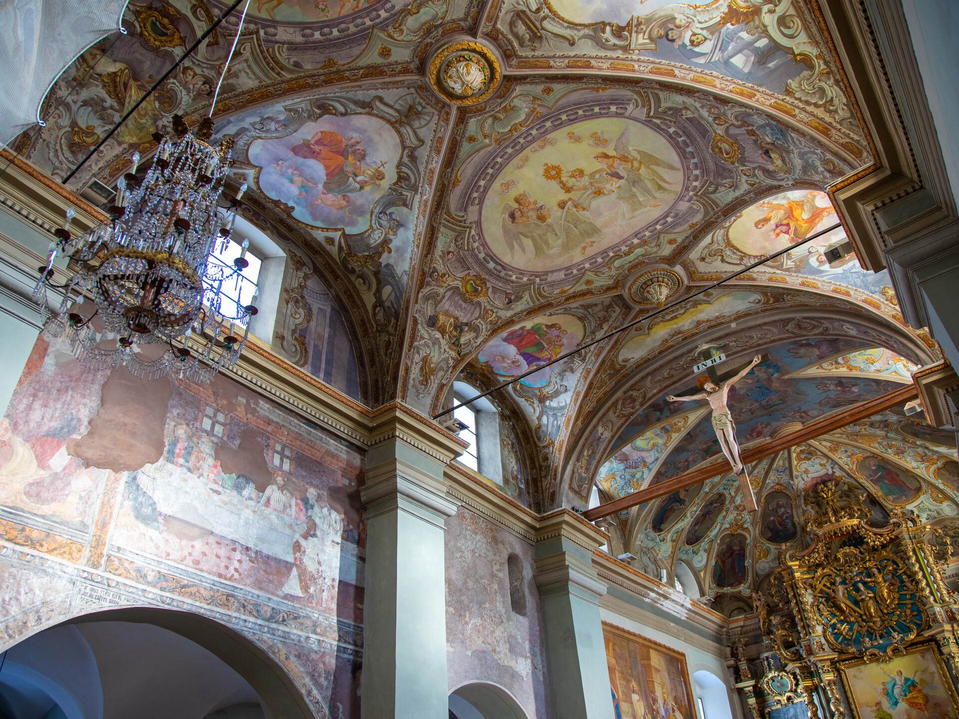 Di particolare valore storico e artistico è il crocifisso ligneo risalente alla fine del Trecento che sovrasta imponente la navata centrale.