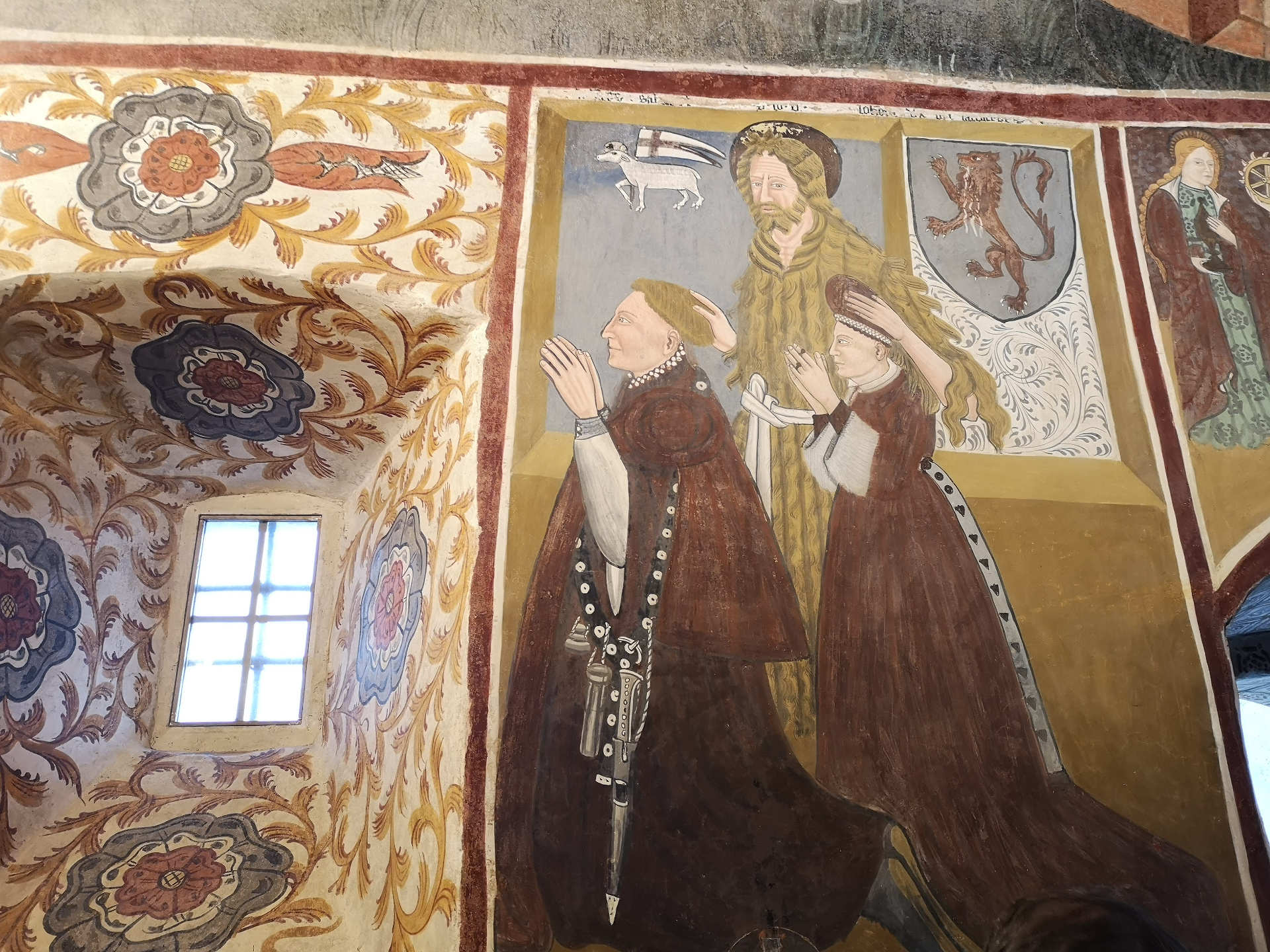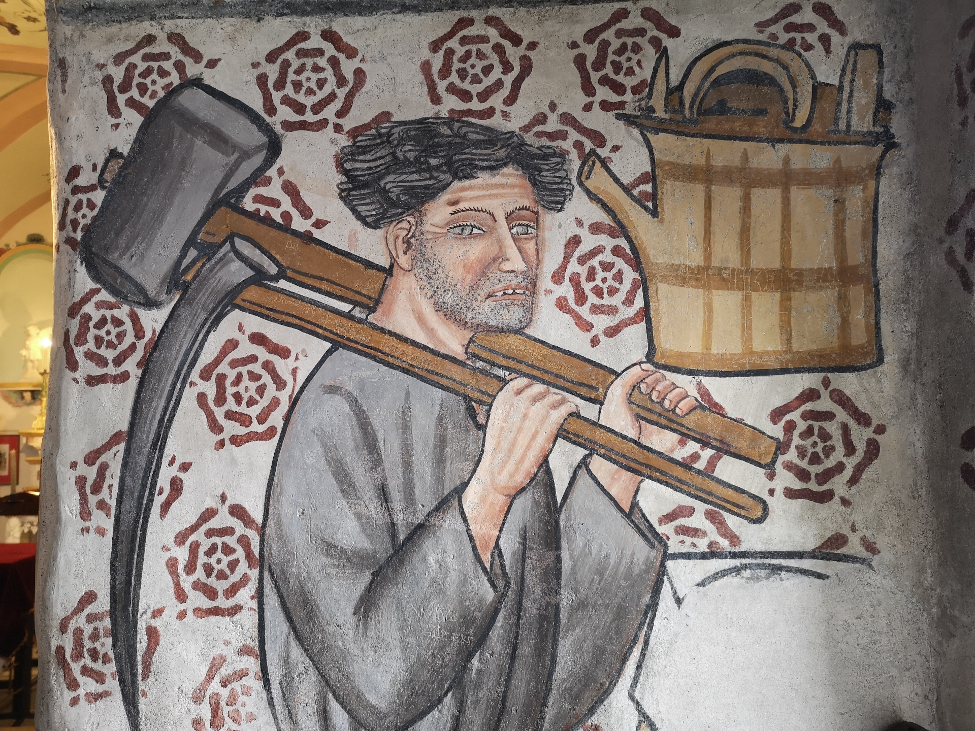 Accanto all’ingresso sono raffigurati il notaio Saluard e la moglie e, nel vano della porta, si vede un contadino con gli attrezzi in mano.