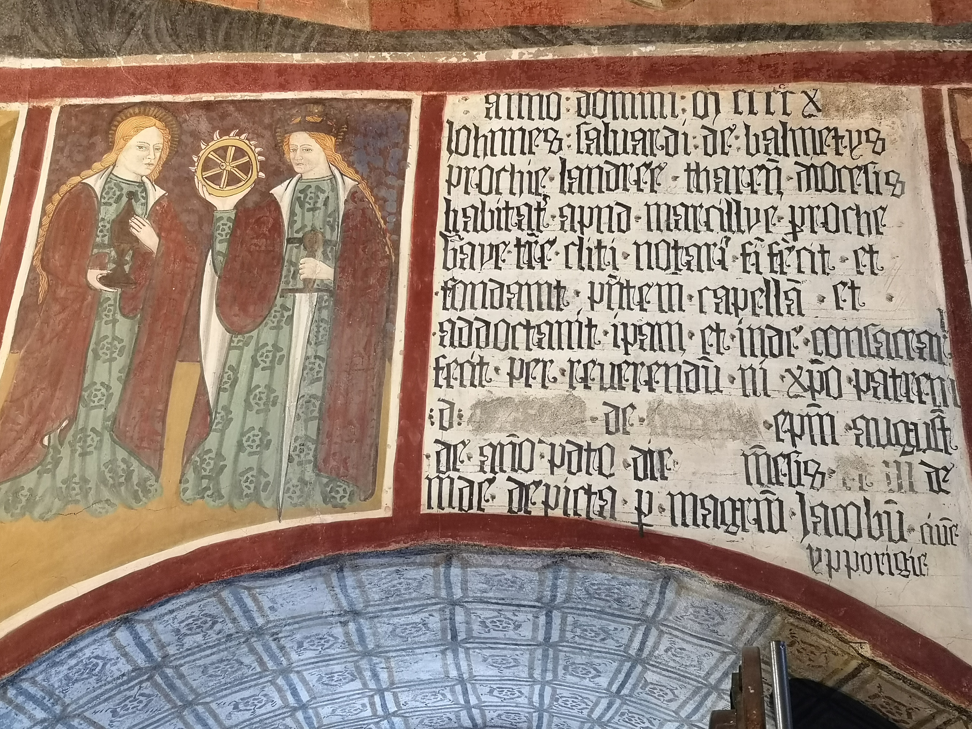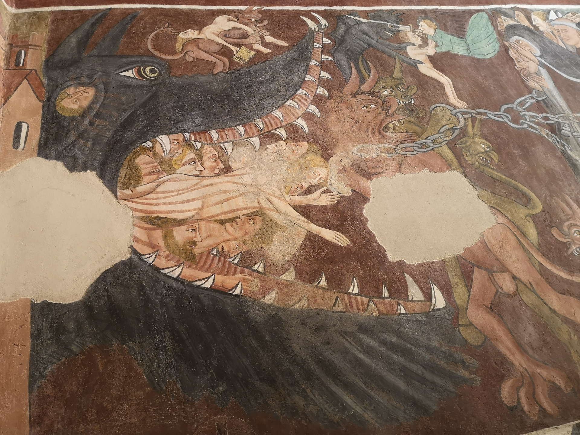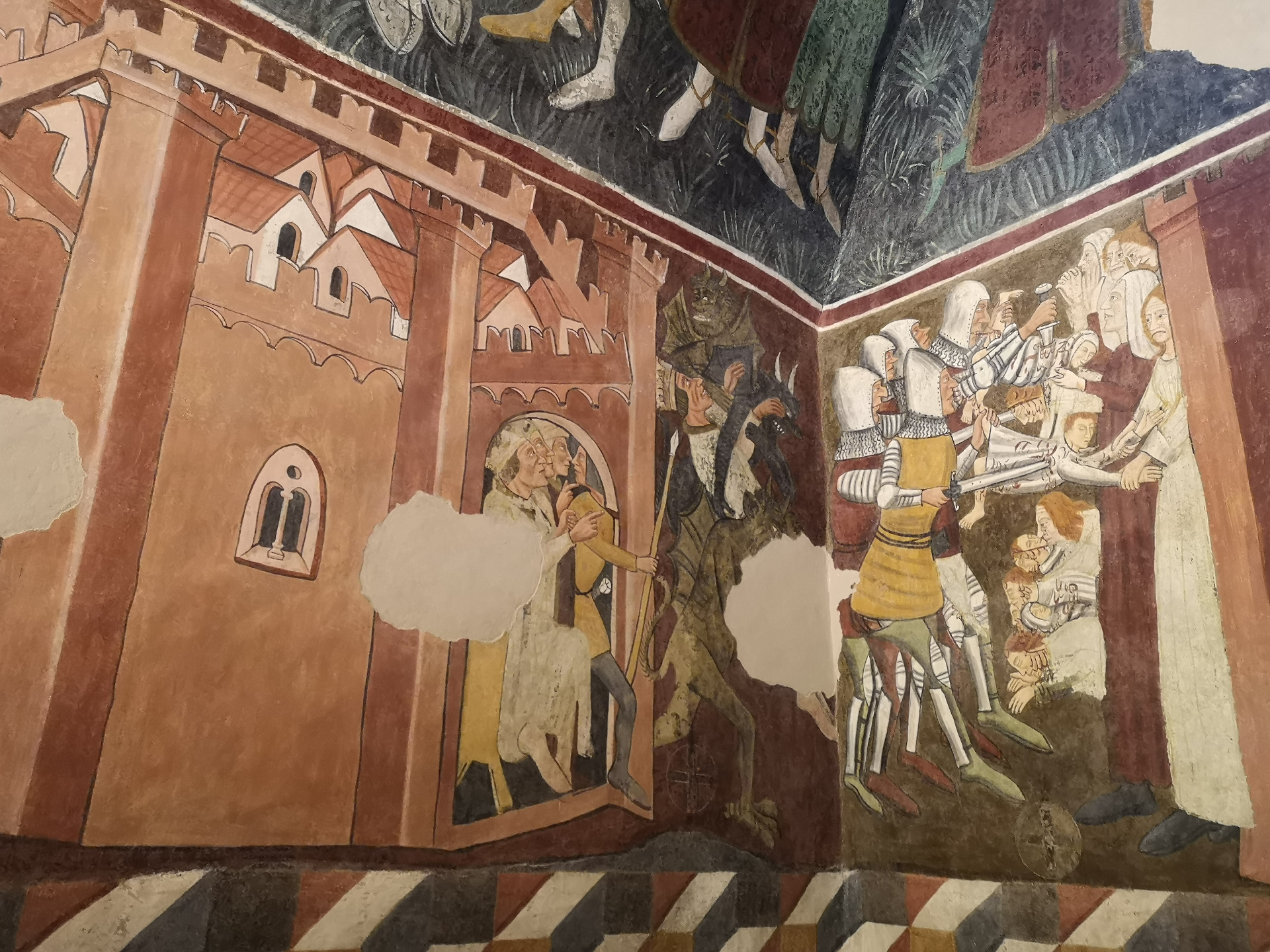 Un successivo restauro ha permesso di ripristinare gran parte delle pitture originali raffiguranti temi classici della tradizione religiosa cristiana come il Giudizio Universale, l’Adorazione dei Magi, la Strage degli Innocenti, la fuga in Egitto e San Michele che pesa le anime.