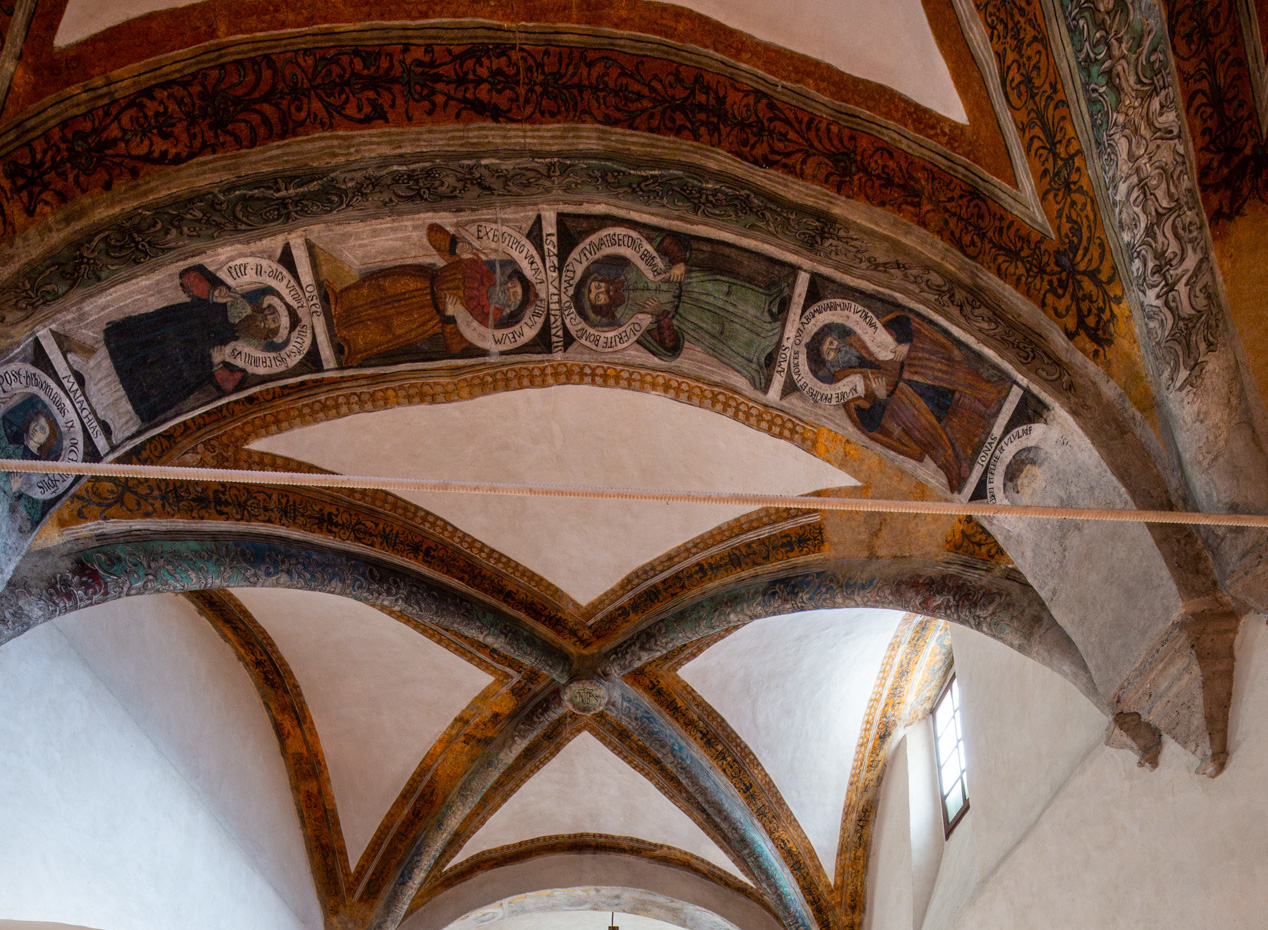 Sugli archi di volta si legge la data del 1546, che segna il ciclo pittorico dei Profeti Daniele, Malachia, Osea, sull’arco sinistro e Amos, Giona, Gioele sul lato destro. Le citazioni dei profeti e degli apostoli, nei filatteri, preannunciano l’infanzia, la predicazione, la passione e la morte di Gesù.