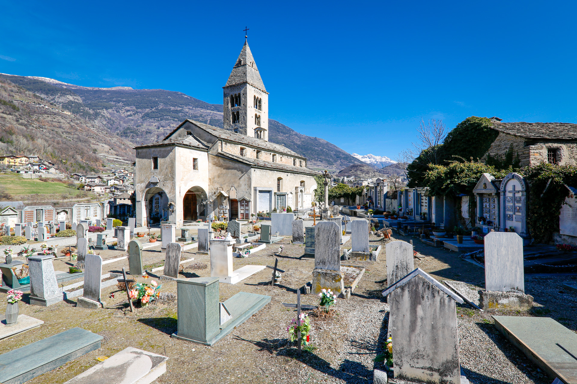 Si accede alla chiesa a piedi, in cinque minuti, dalla strada che parte dal ponte sulla Dora Baltea.