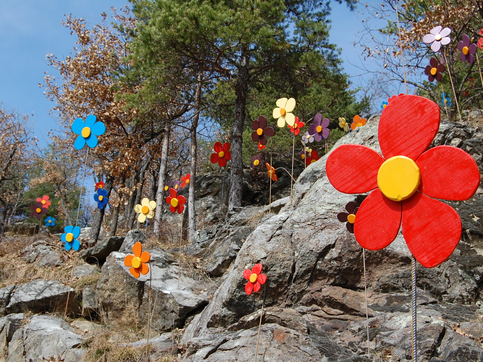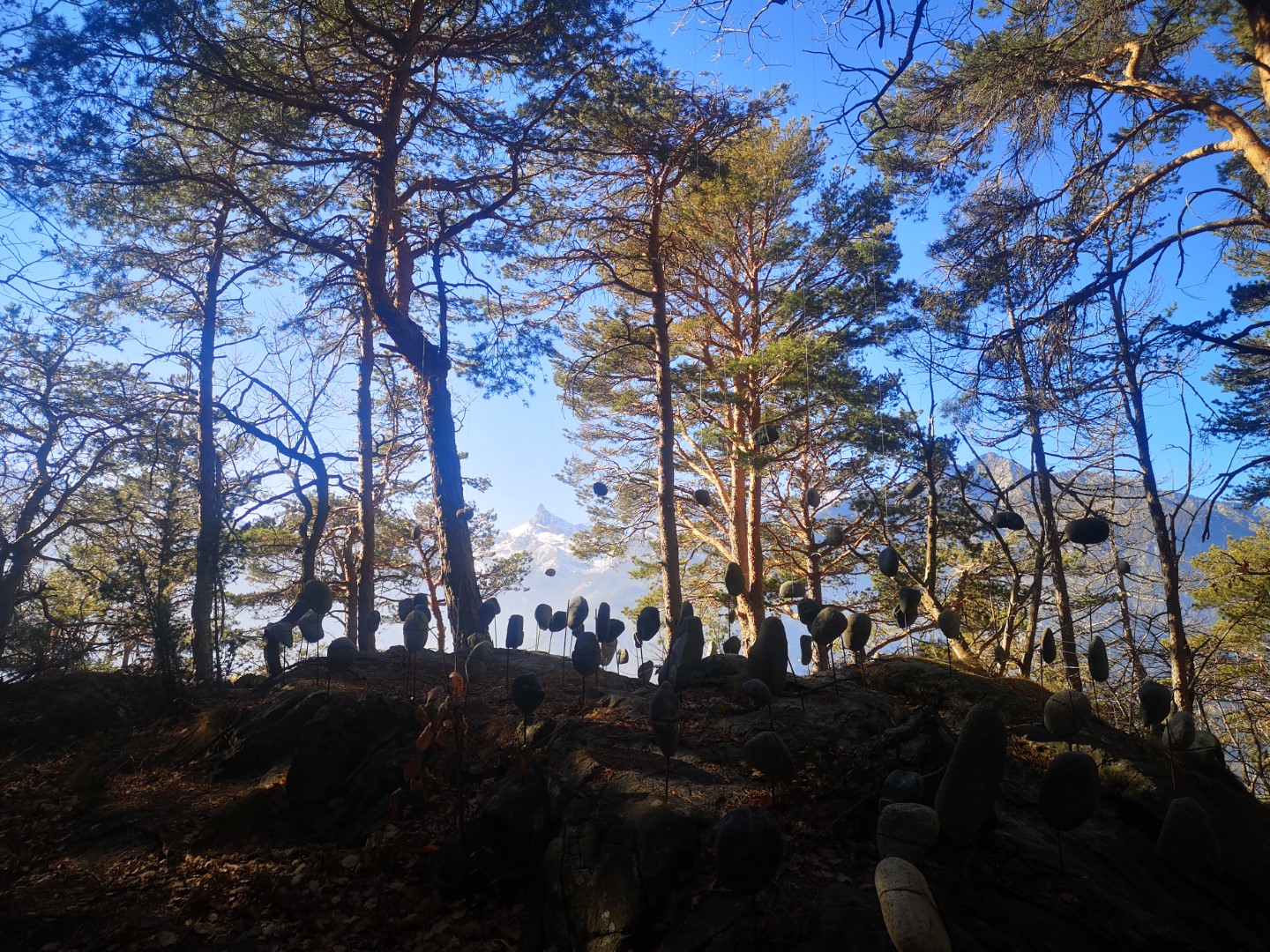 Challand Art è un percorso artistico con 14 opere d’arte uniche, realizzate con materiali naturali: terra, foglie, legno, pietra, ferro.