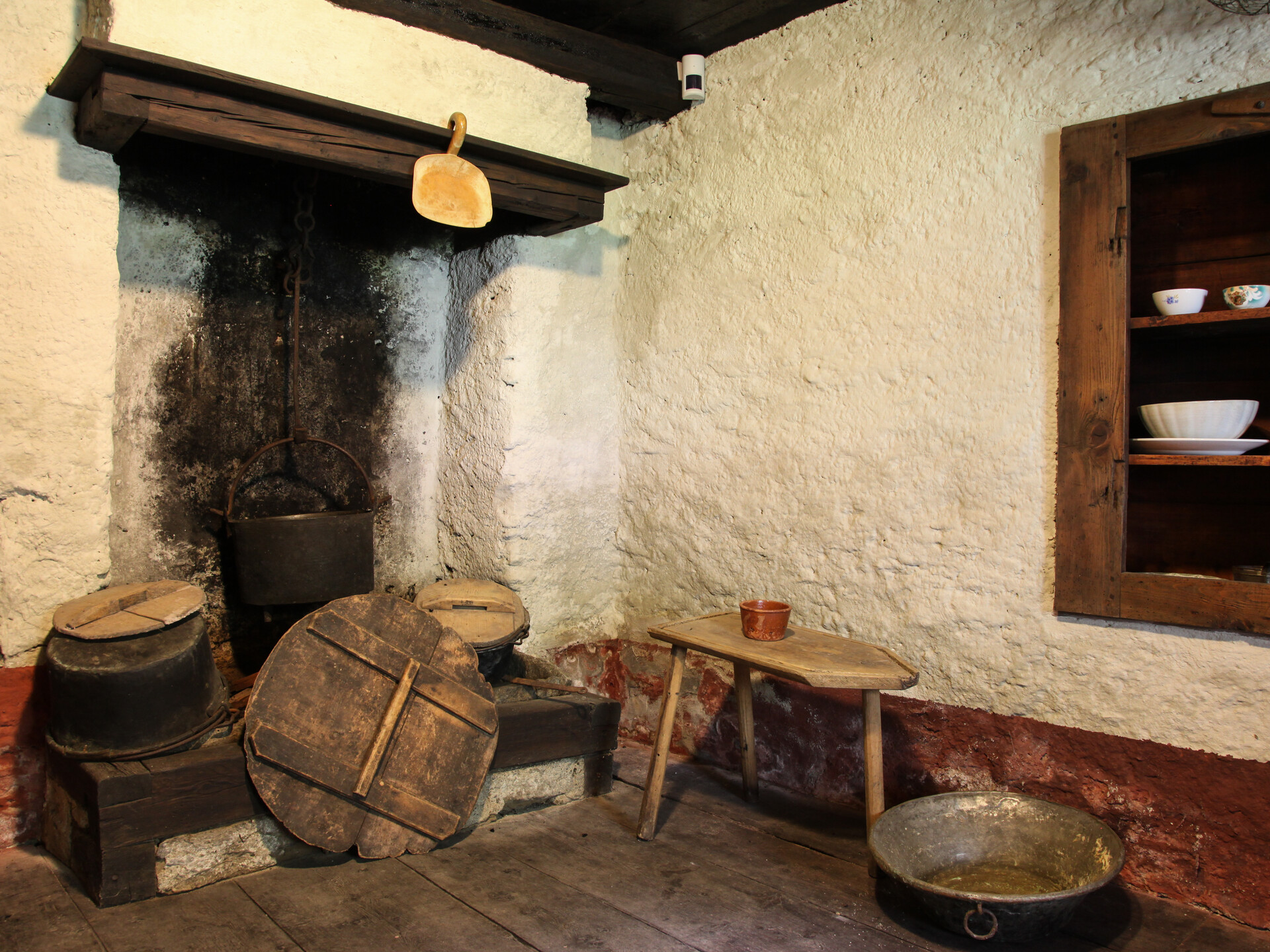 Tra gli arredi spicca un vecchio telaio manuale in legno e un orditoio. Il telaio è stato restaurato, riequilibrato per essere perfettamente funzionante ed utilizzabile a scopo dimostrativo; costituisce un unicum in tutto l’arco alpino, grazie anche alla sua tecnologia arcaica di lancio manuale della navetta (attrezzo in legno contenente il filo della trama da intrecciare all’ordito sistemato sul telaio), altrove semi-automatizzato.