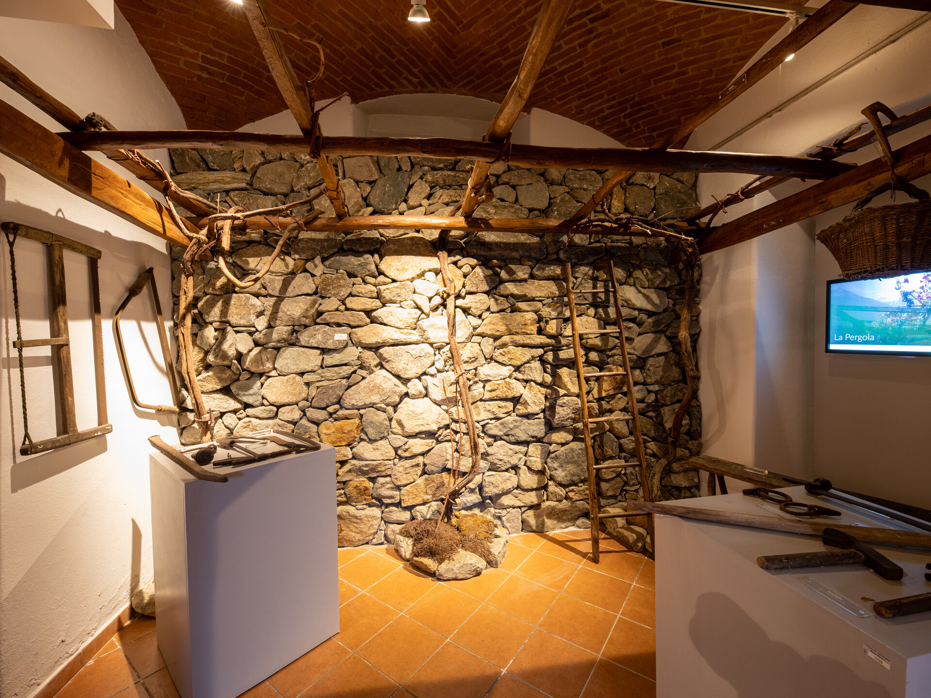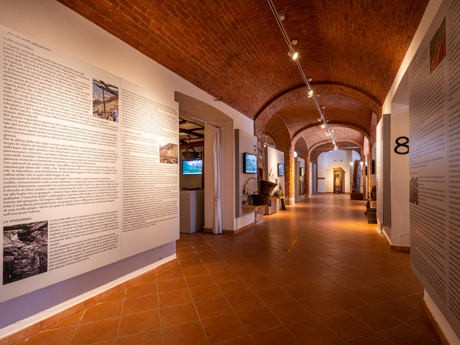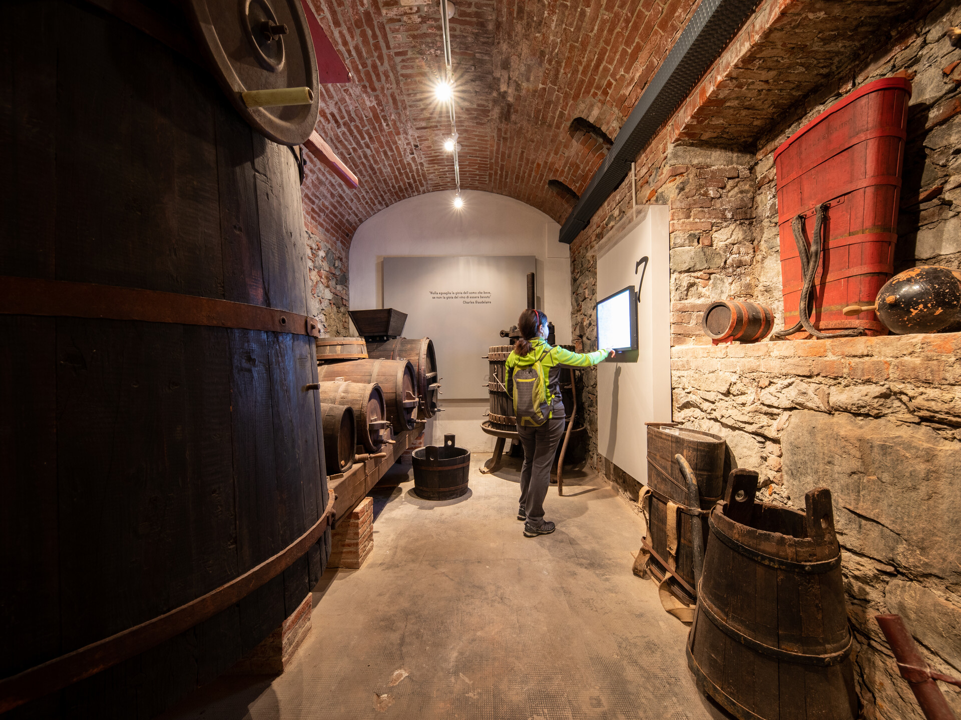 Oltre ad attrezzi e oggetti legati alla raccolta dell’uva e alla sua trasformazione ci sono, lungo il percorso di visita, alcuni touch screen che illustrano le tecniche di lavorazione ed i pregiati vini locali.