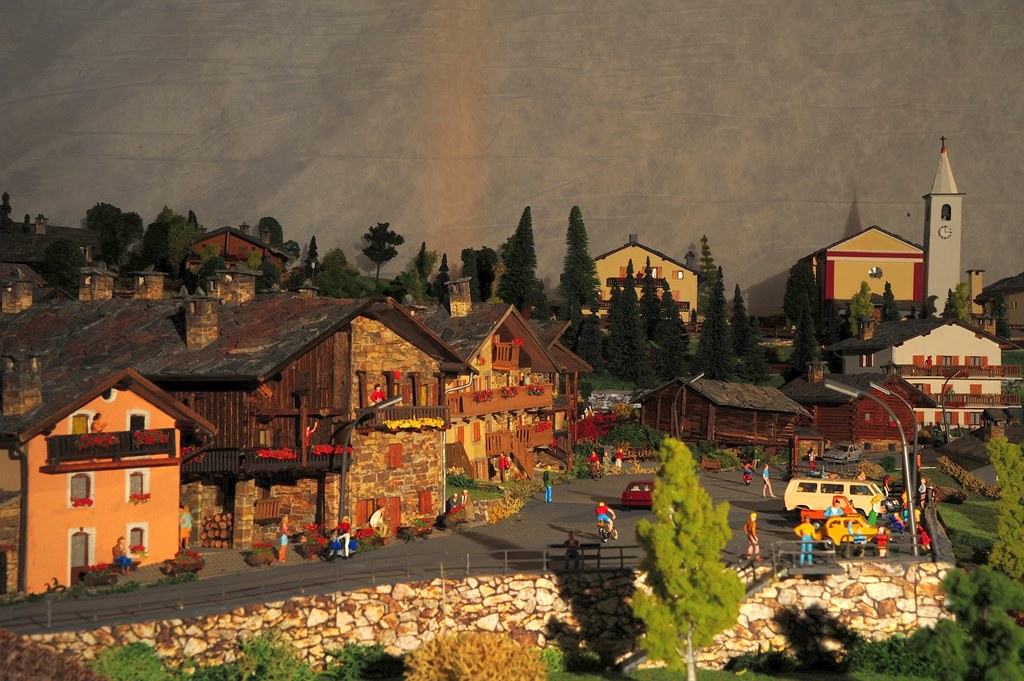 Tutto è stato riprodotto: la chiesa parrocchiale, i 200 edifici, il municipio, le aree verdi, le strade, i mulini, i ruscelli, persino i Magdeleins ed i villeggianti (alcuni si sono riconosciuti, affacciati ai balconi, mentre chiacchierano tra loro, o a passeggio con il cane…).