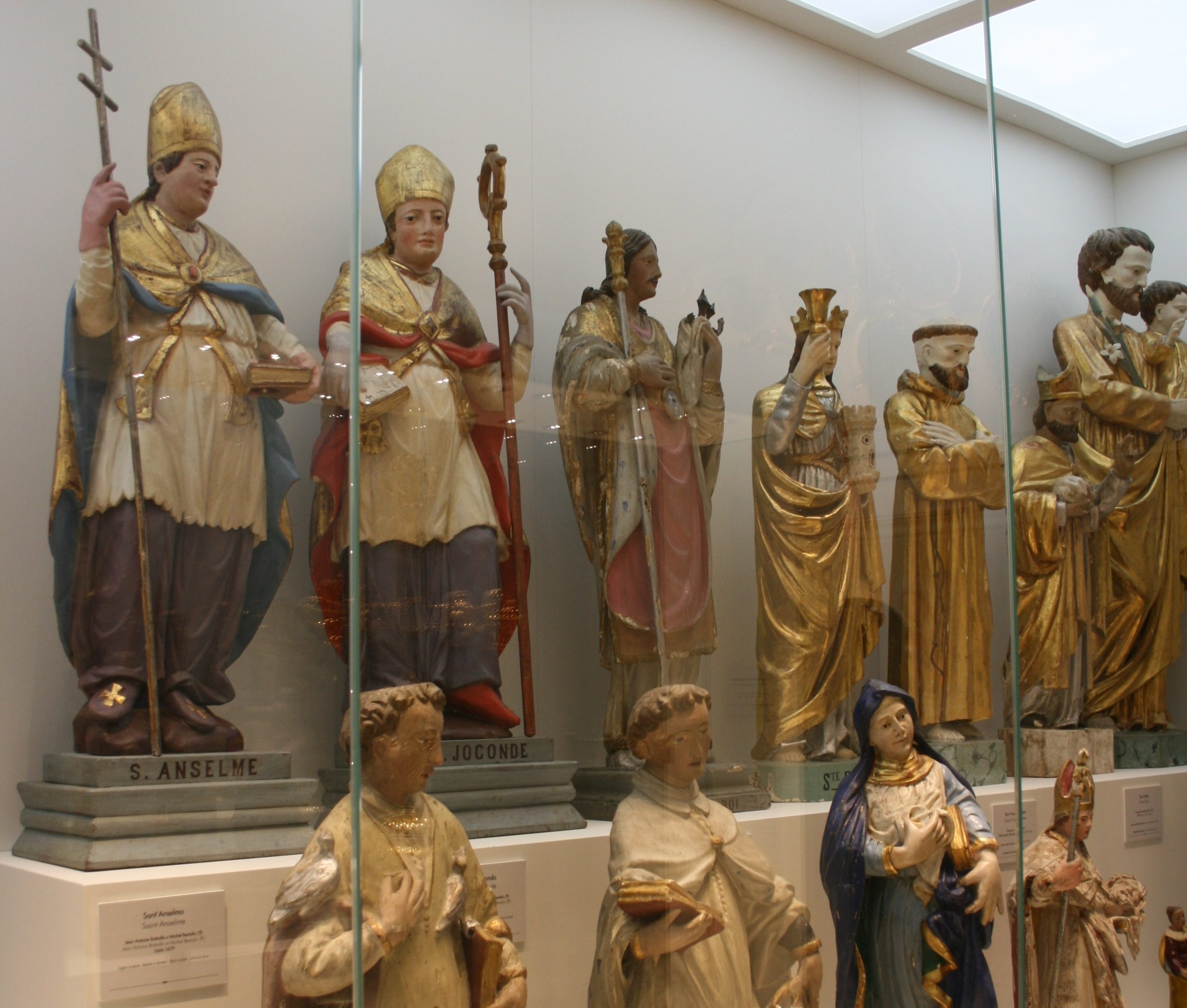 Di epoca barocca sono le quattro statue lignee dei santi valdostani Anselmo, Giocondo, Orso e Bernardo facemti parte originariamente dell’altare maggiore realizzato nel 1679. A queste si affiancano nella vetrina altre sculture di santi, databili ai secoli XVII-XVIII, provenienti dalle cappelle della vallata e in particolare da quelle non più esistenti come Surrier, Usellières e Fornet. Stilisticamente omogeneo è il gruppo di statue realizzate dall’artista valsesiano Giovanni Comoletti per la cappella di Mondanges alla fine dell’Ottocento.