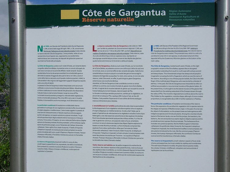 Lo sperone dalla forma allungata – la “côte” – originato da depositi di origine glaciale, è uno degli elementi più significativi di questa riserva naturale, che deve il proprio nome ad una leggenda secondo cui la côte sarebbe il dito mignolo del gigante Gargantua, personaggio inventato da Rabelais, sepolto da una coltre di detriti.