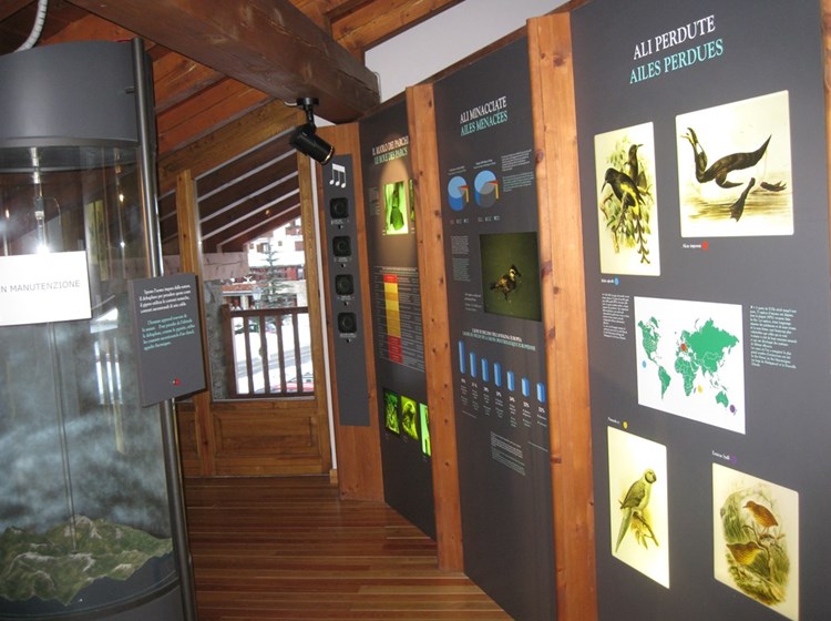 Il gipeto, l’avvoltoio degli agnelli, scomparso proprio in questa valle agli inizi del secolo scorso ed ora tornato con la sua impressionante apertura alare a volare nei cieli della vallata, rappresenta il tema centrale di questo spazio, che con informazioni, immagini, suoni e giochi multimediali, permette di approfondire la conoscenza di questo spettacolare animale, oltre che dell’avifauna del Parco.